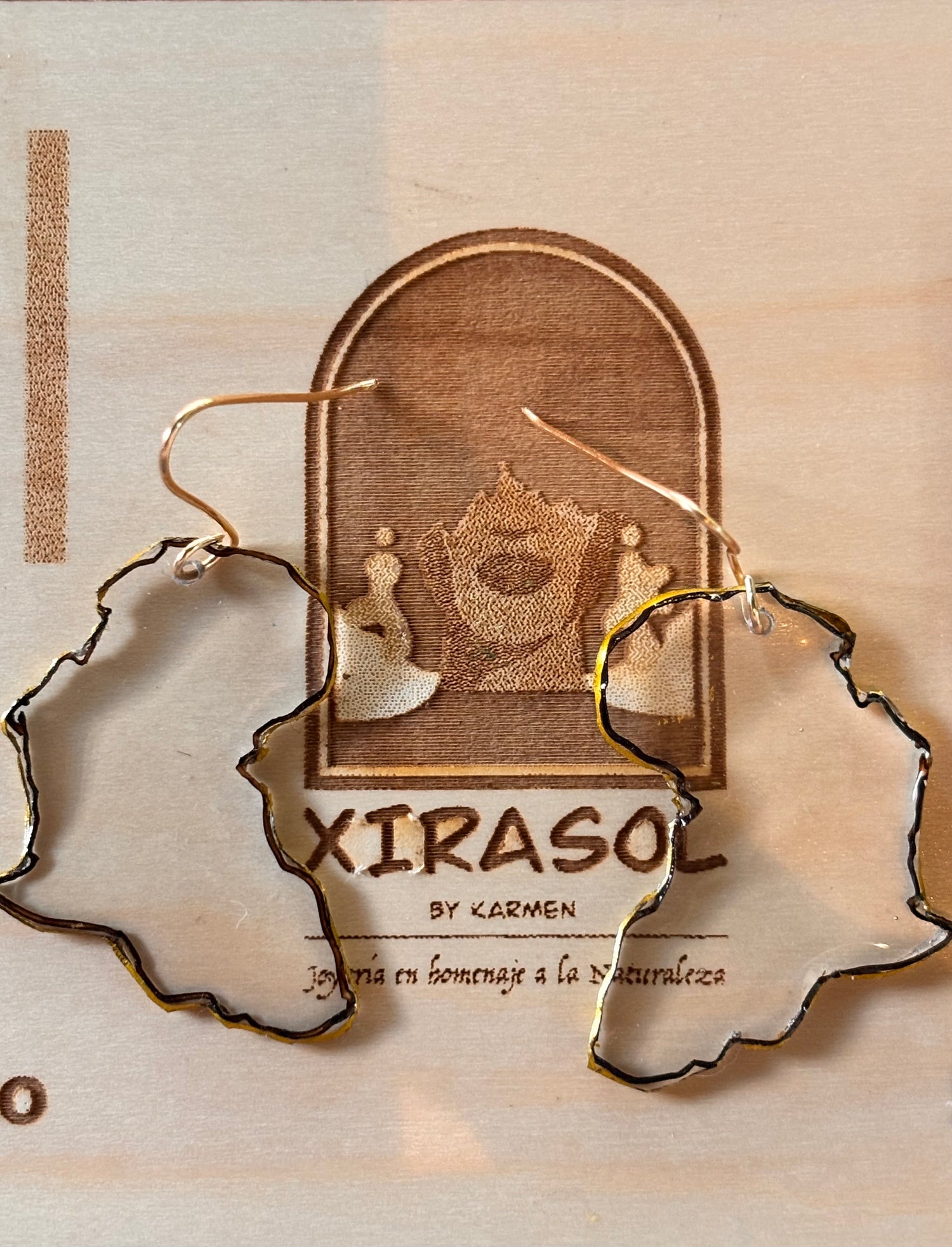 Par de pantallas elaboradas en una base de madera y resina encapsulada.