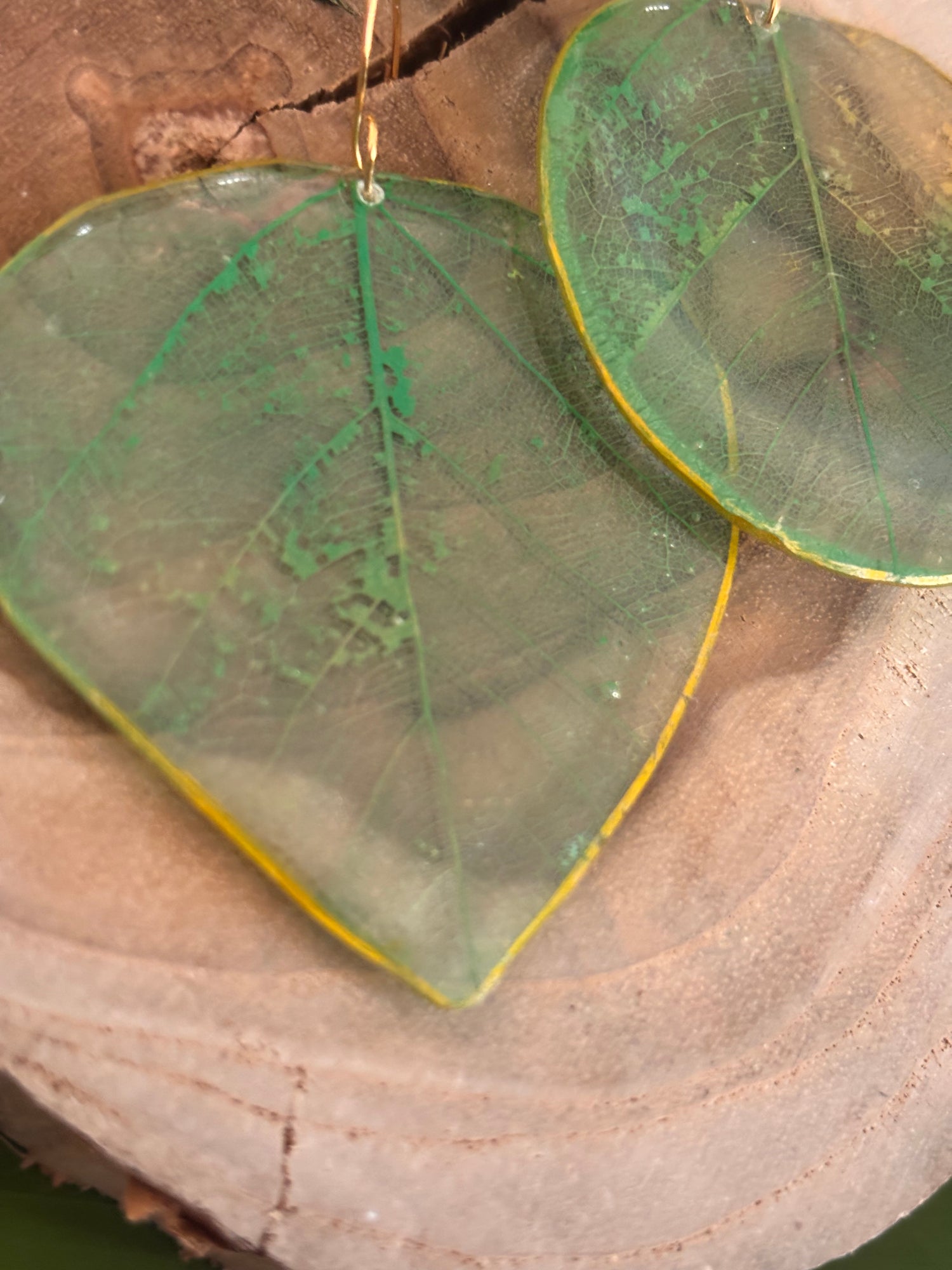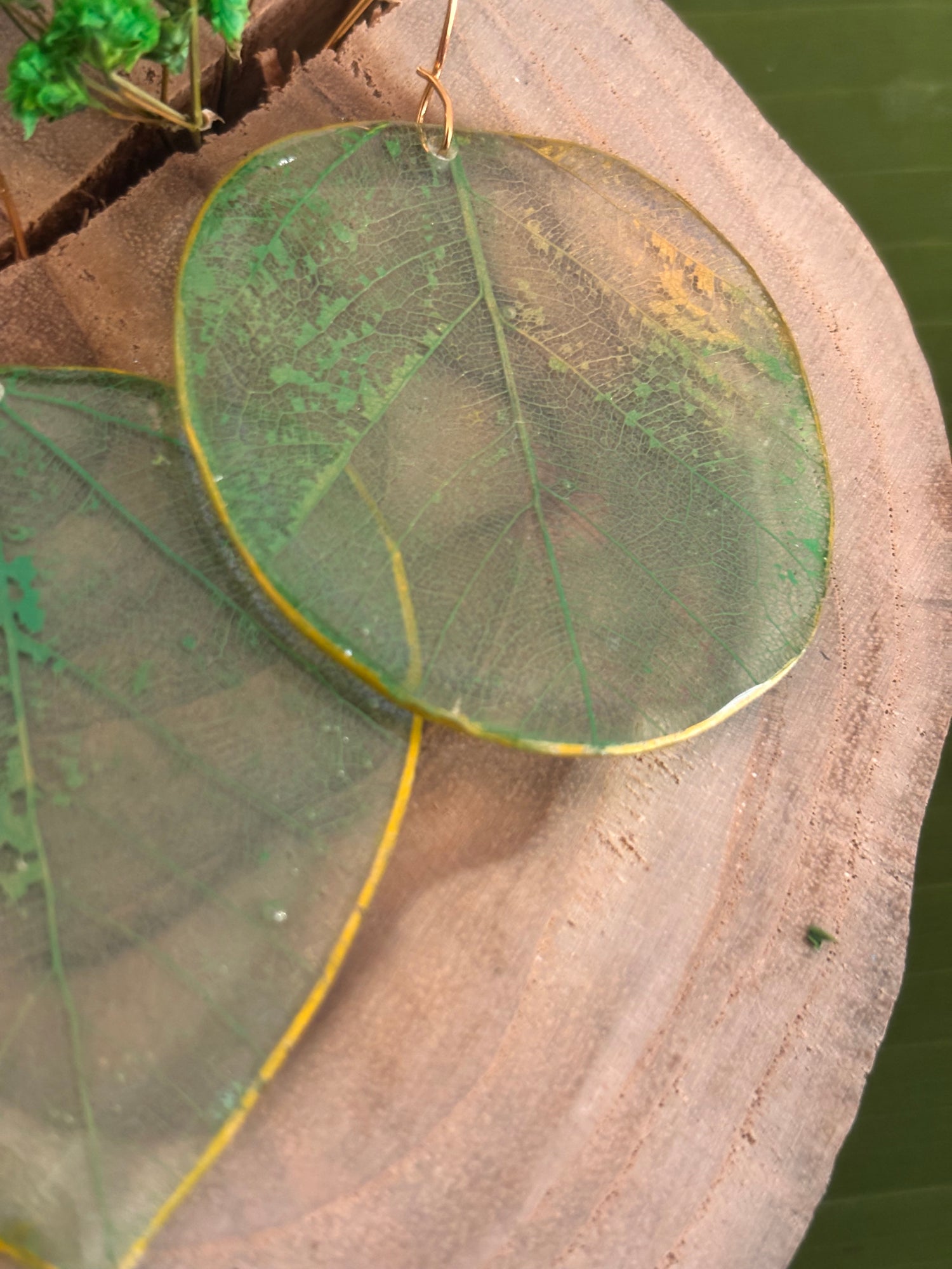 Esqueletos de hojas, pintadas a mano y encapsuladas.