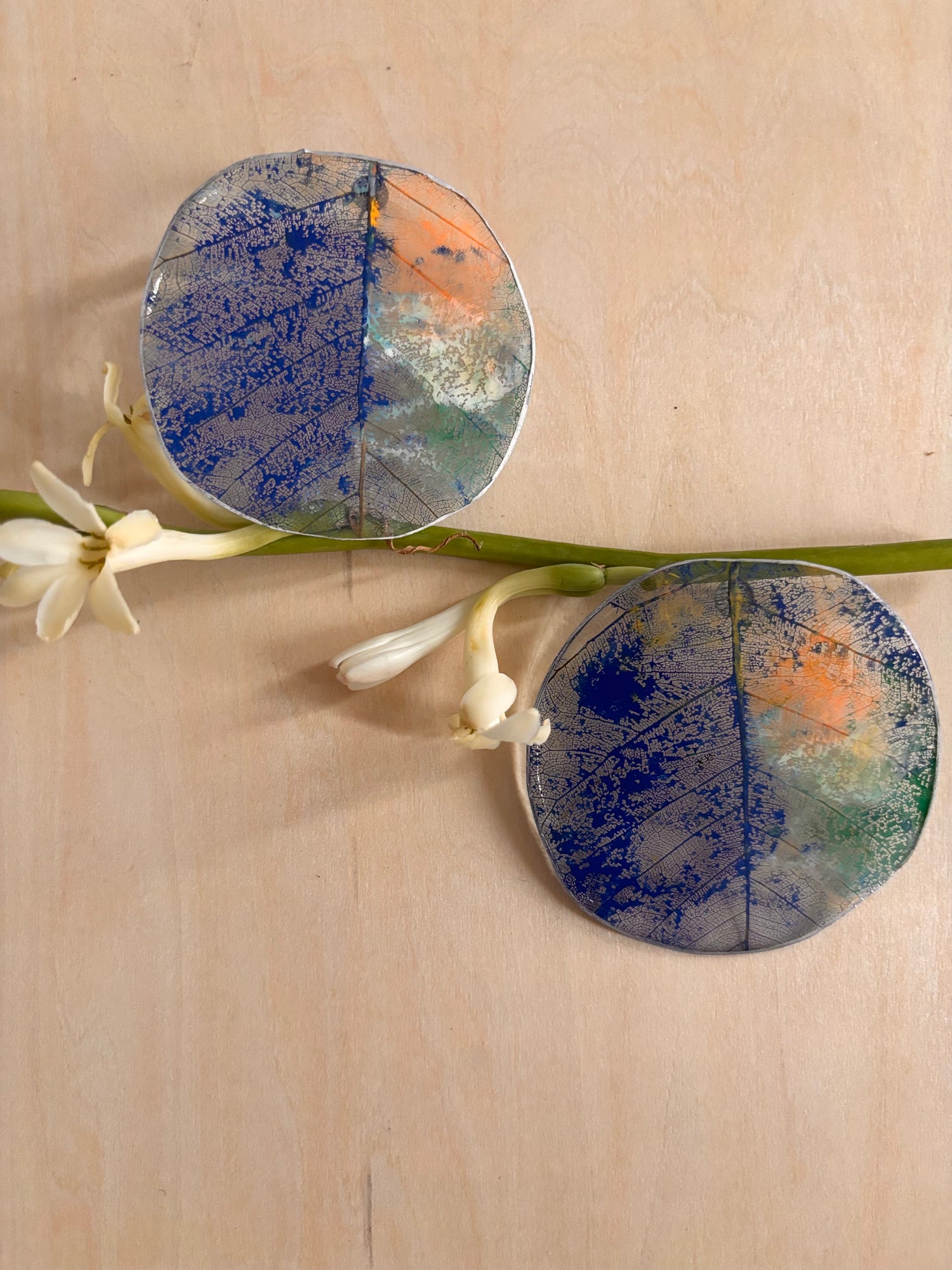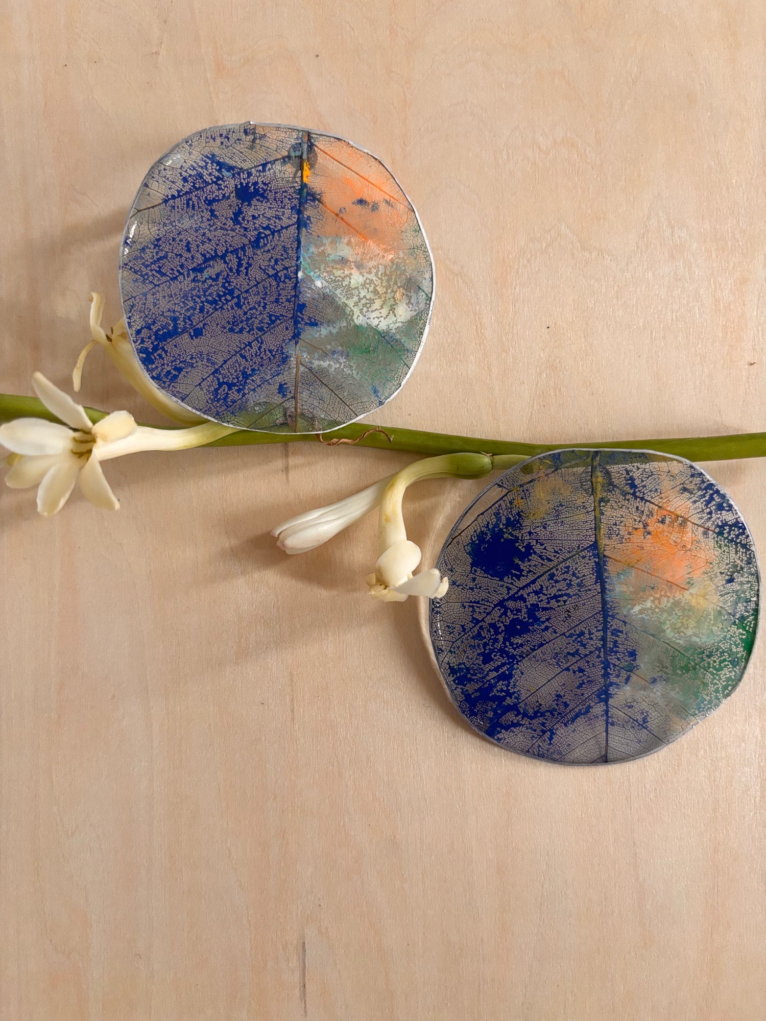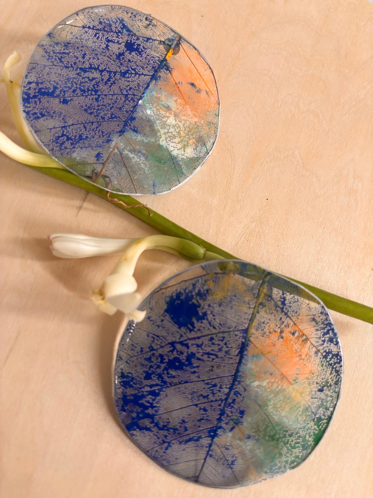 Par de pantallas de hojas, pintadas a mano.