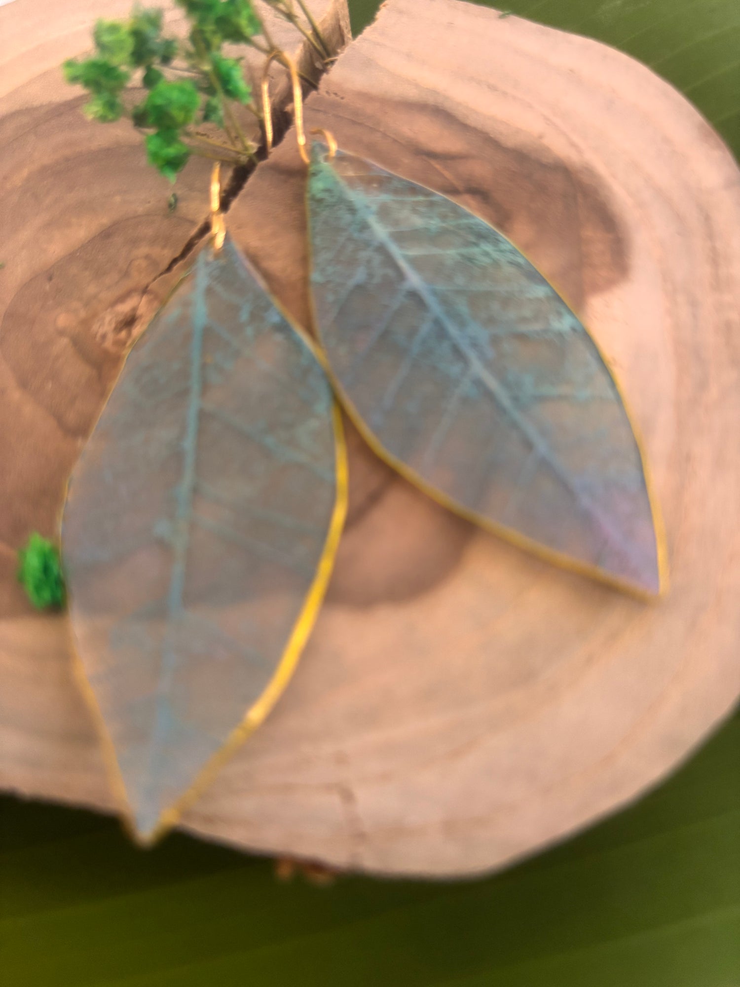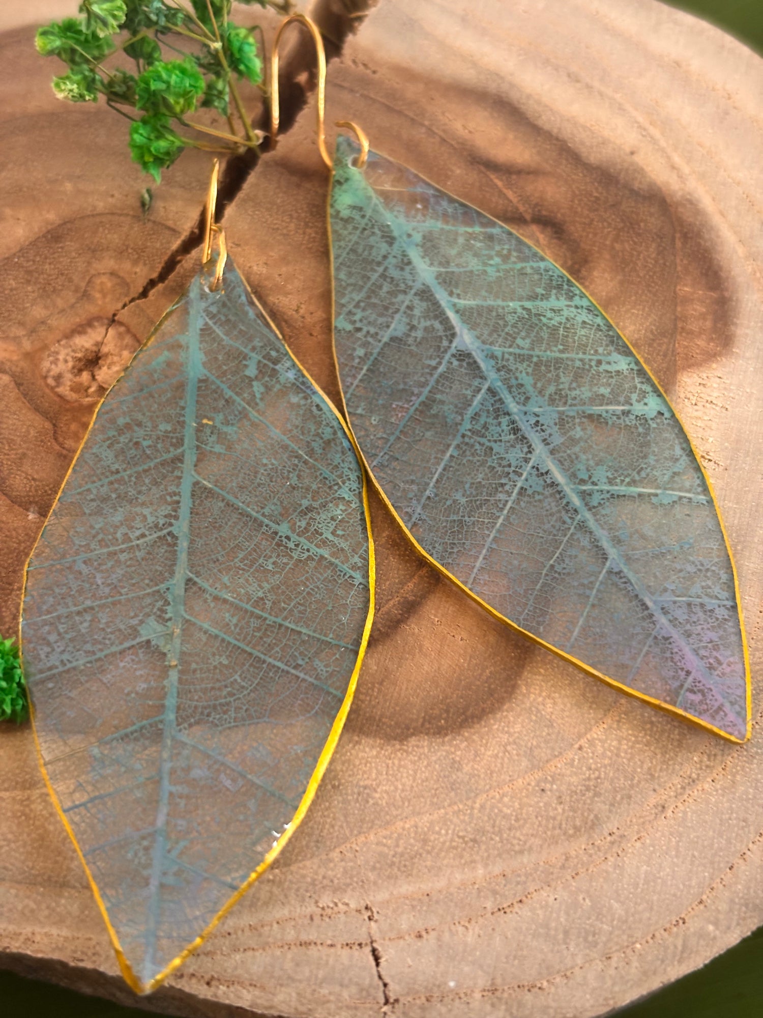 Par de pantallas hechas de esqueletos de hojas , pintadas a mano. Miden cerca de 1.5”