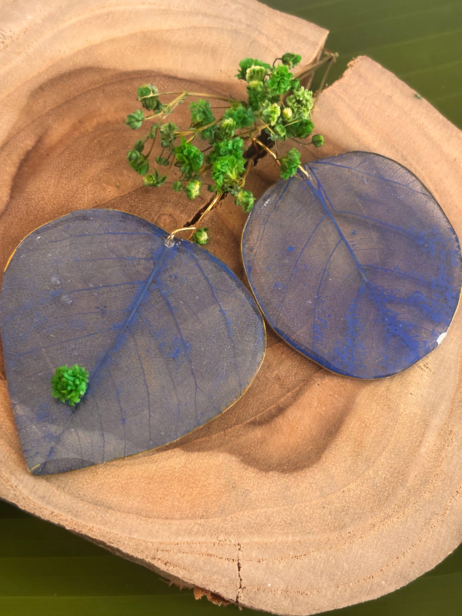 Par desigual de pantallas hechas de esqueletos de hojas pintadas a mano y revestidas. Miden cerca de 1.5”