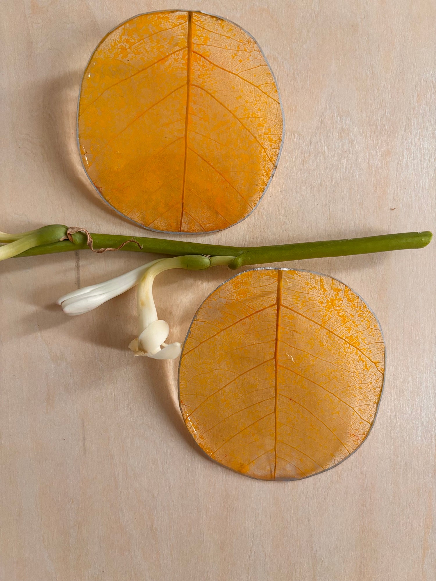 Par de pantallas de hojas, pintadas a mano.
